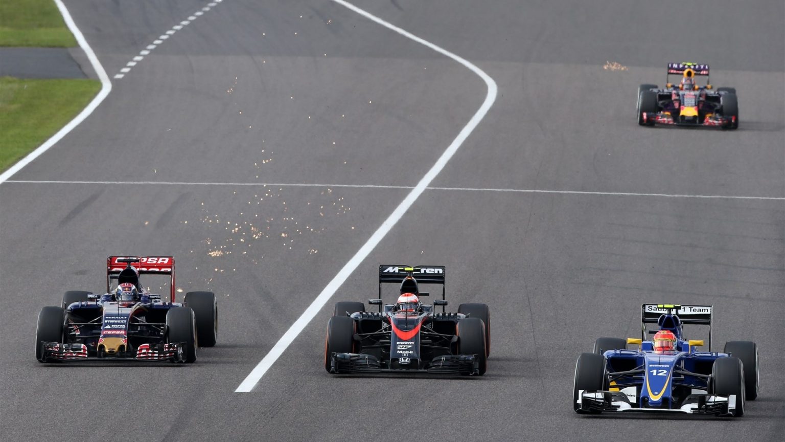 Карлос Сайнс также неудачно показал себя в квалификационных заездах. В воскресенье гонка сложилась намного лучше, но из-за собственной ошибки (Карлос не угадал действия Пастора, который должен был свернуть в боксы, но остался на трассе) Сайнс резко свернул на пит-лейн и повредил перенее антикрыло. После затяжного пит-стопа испанец пытался обогнать Переса и в этой погоде уничтожил шины, но доехал до финиша 10-м.