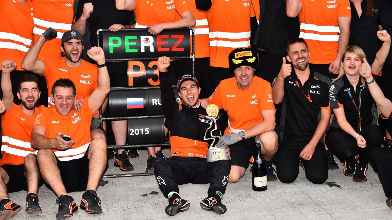Неожиданное и фантастическое 3-е место! Серхио Перес впервые в сезоне приехал на подиум! В Force India сразу же объяснили причину феноменального успеха – российская легкоатлетка Дарья Клишина принесла команде удачу своим присутствием в боксах.