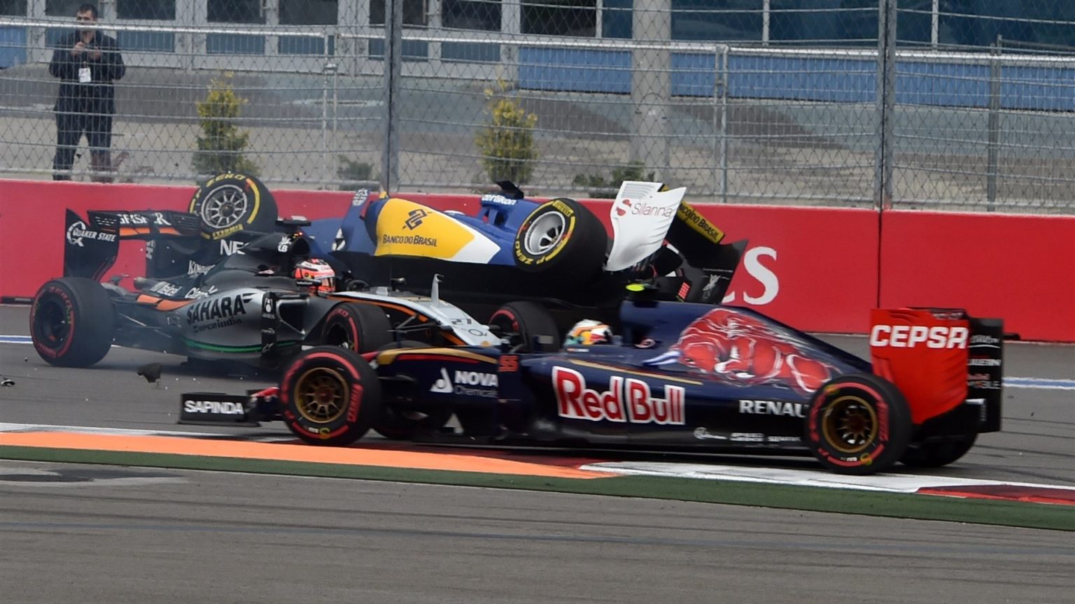 Серхио Пересу в воскресенье удача улыбнулась самой широкой улыбкой. Команда правильно рассчитала проведение пит-стопа – во время пребывания на трассе машины безопасности, а на заключительных кругах столкновение двух финнов сыграло на руку Серхио.