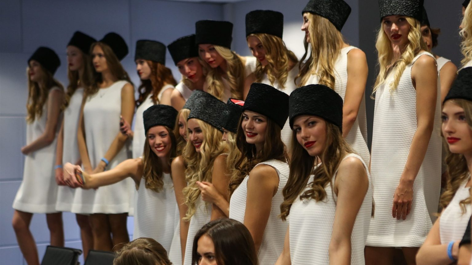 После вопросов мистера Джордана, тройка призёров отправилась на пресс-конференцию, где их ожидал приятный сюрприз. Напротив стола, за которым сидят пилоты, стояли очаровательные русские грид-гёрлз и встречали аплодисментами гонщиков.