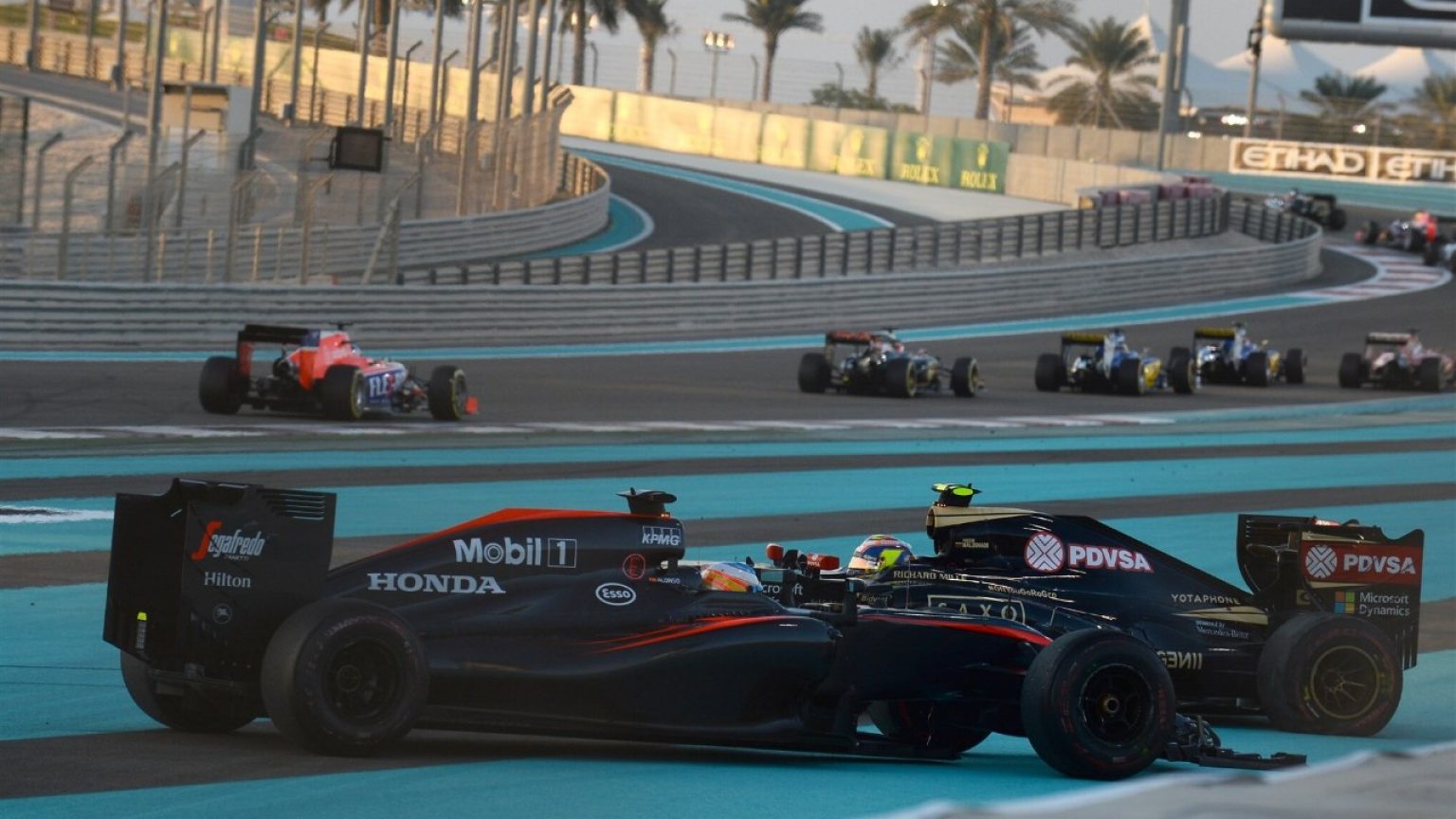 Практики и квалификация не предвещали хорошего результата Роману и Пастору. С Пастором всё предельно ясно: последняя гонка сезона, куда же без экшена! Мальдонадо настолько перевозбудился, что экшен начался уже в первом повороте. У «аварийного» сход, а Алонсо жалко! И так проблемы сплошные, а тут ещё безумный Пастор.