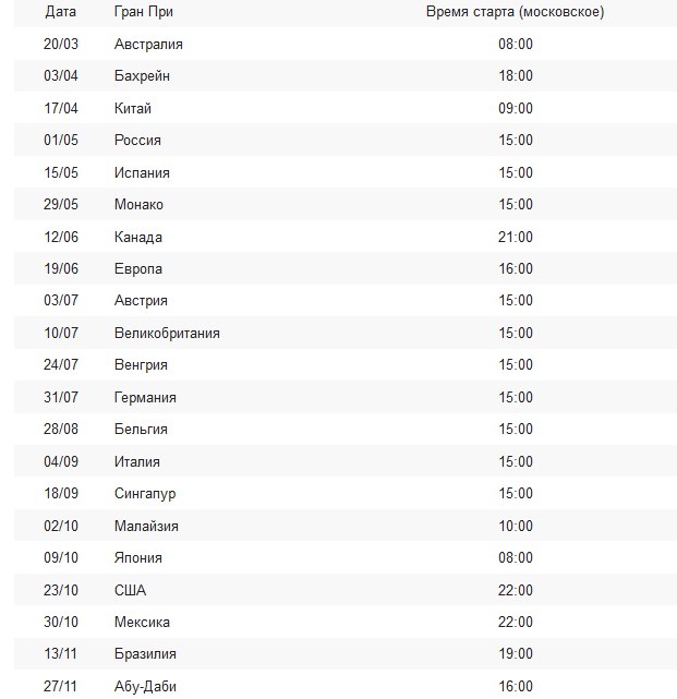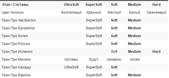 И ещё одно изменение – это время выбора резины. Теперь команды должны информировать о своем выборе за 8 недель до европейских этапов и за 14 до этапов, проходящих за пределами Европы. Пока известны составы шин на следующие Гран-При: