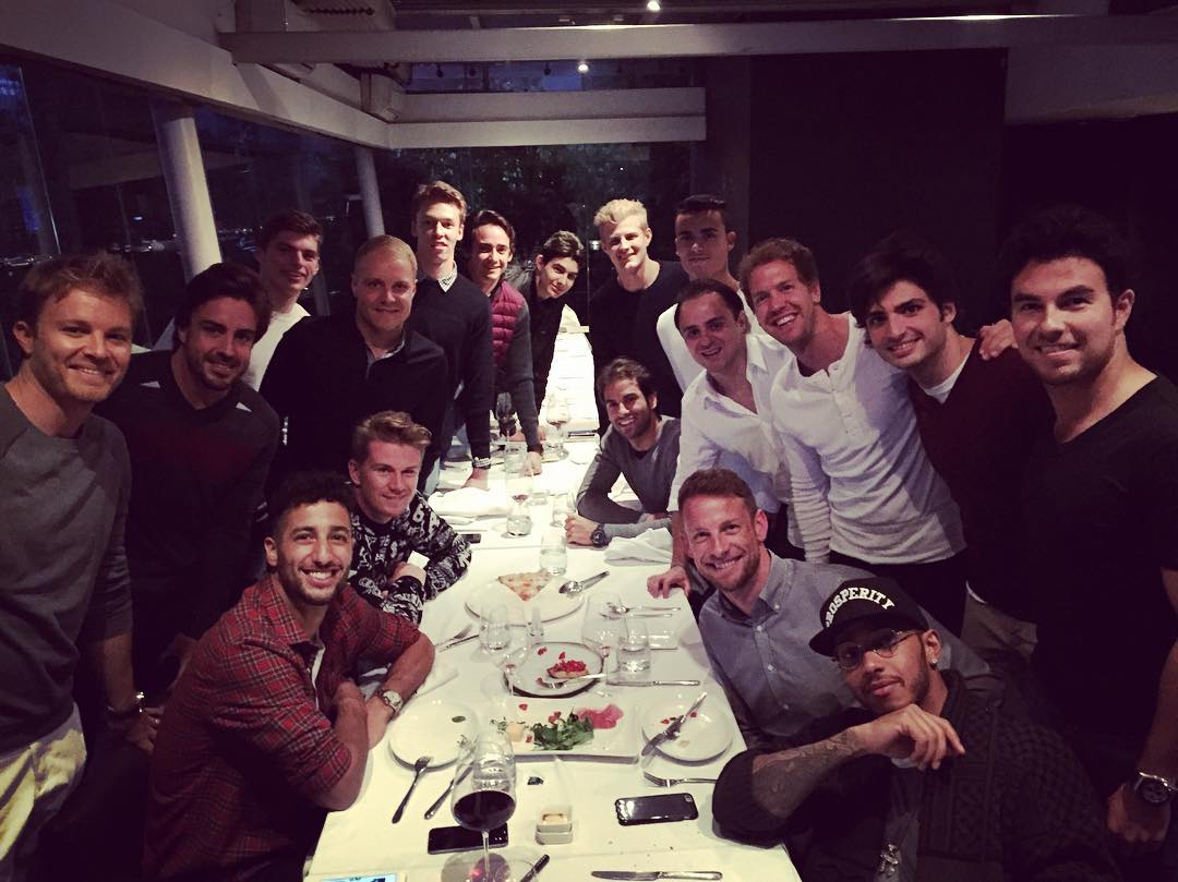 Совместный ужин пилотов, прошедший в одном из ресторанов Шанхая, привлек огромное внимание со стороны прессы и болельщиков. Подобные мероприятия среди соперников – зрелище довольно редкое, так что совместные «селфи» всколыхнули СМИ и дали пищу для различных предположений. Самой популярной версией стало обсуждение «союзом болтунов» проблем современной Формулы 1. Но как позже признались сами гонщики, они просто провели время вместе, и разговоры в тот вечер были далеки от темы гонок.